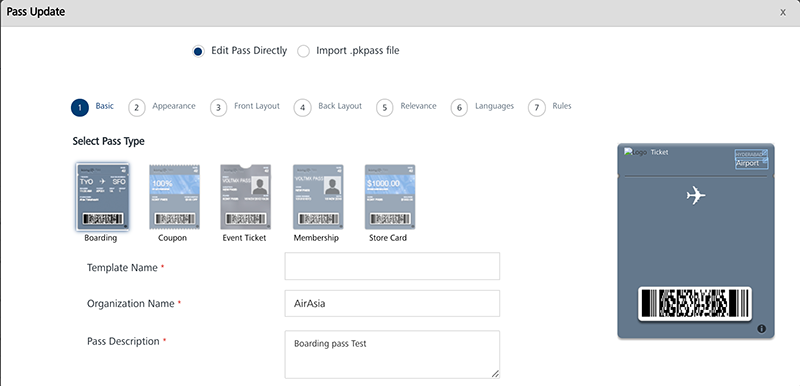 Based on your requirements, update the required fields. For more details, refer Adding a Passbook Template.
