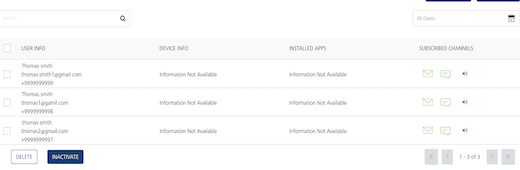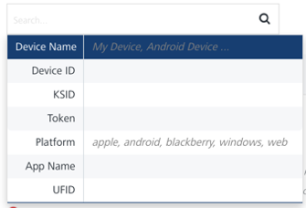 | Device Info | Device Name: Displays the device name, such as John Doe’s Phone. The system displays a text such as Android Device or Apple Device in the Device Name column when the device name is not set for the Android and Apple devices respectively DeviceID: Displays the device IDs of registered devices. When an application registers for push notifications, the device ID of the mobile device is registered in the Push Notification Service (PNS). When PNS wants to send a push message, the cloud uses the device ID to locate the device on which the client application is installed, and then sends a push notification Platform: Displays a list of targeted platforms configured for each of the added devices |