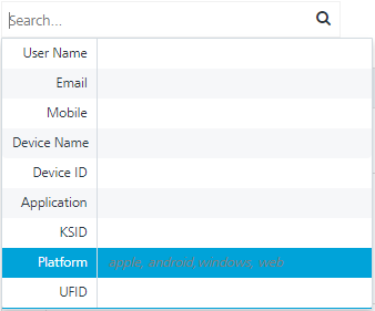 Search: Click in the Search field to view options to search a user. You can search users based on the following criteria: