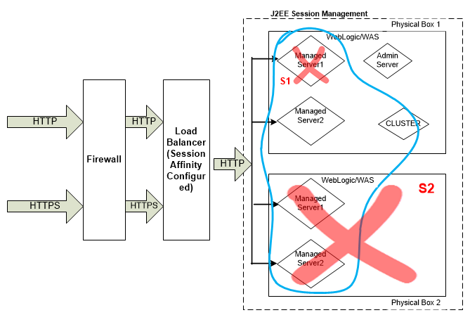 | Data replication | Not Supported | Yes, session replication needs to be configured on App Server |