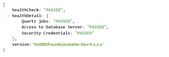 - Use the Healthcheck URLs mentioned at Test the Setup post-deployment to check the status of a Volt MX Foundry component on each node.