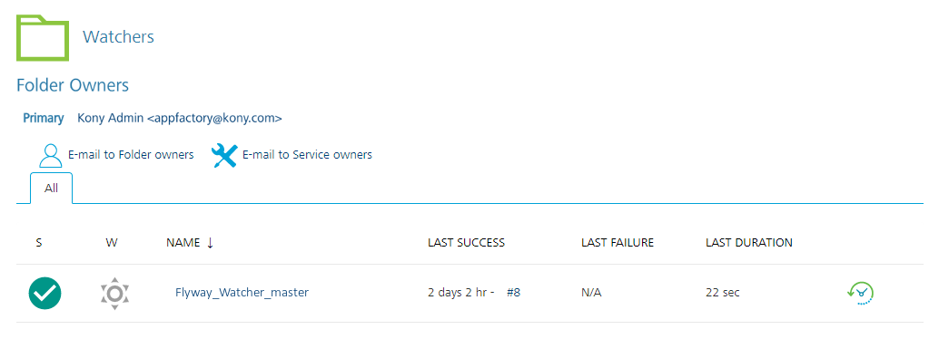 - In the Triggers folder, click the build icon for the createFlywayTrigger job.