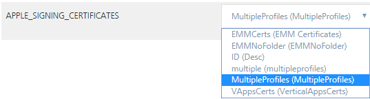 Click APPLE_SIGNING_CERTIFICATES drop-down list to find the new certificate.