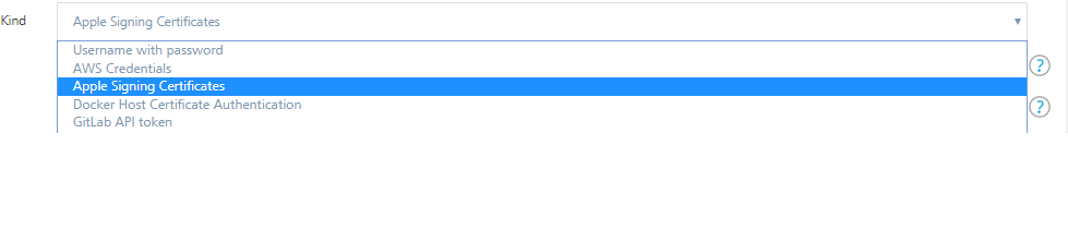 Choose Kind as Apple Signing Certificates from the drop-down list.