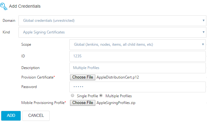 - For multiple profiles, you must upload a zip that contains multiple mobile provision profiles.