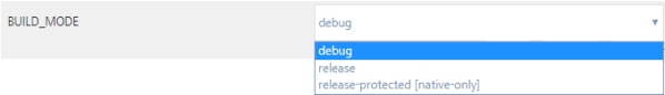 Note: The KeyStore build parameters appear only when you select Release or Release-Protected in BUILD_MODE.