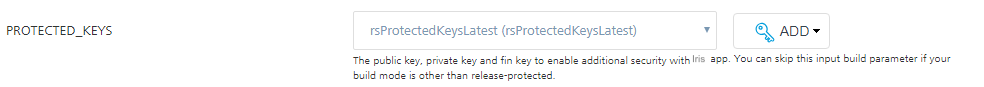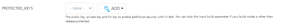 PROTECTED_KEYS - The Protected_Keys field appear only when you select Release Protected from the BUILD_MODE list. Select either the public key, private key or fin key to enable additional security with Iris app. You can skip this input build parameter if your build mode is other than release-protected.