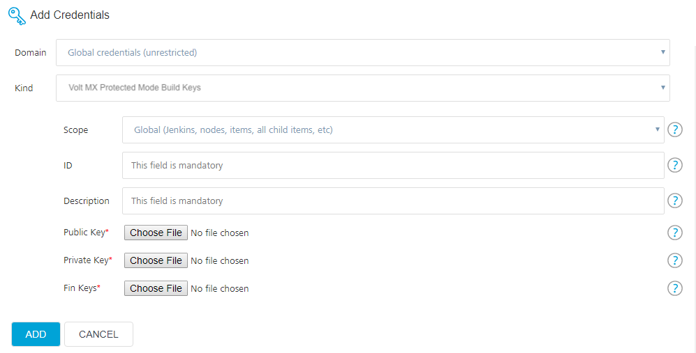Choose Kind as Volt MX Protected Mode Build Keys from the drop-down list.