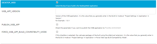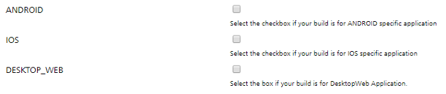 DESKTOP_WEB - Select the checkbox if your build is for DesktopWeb specific application.