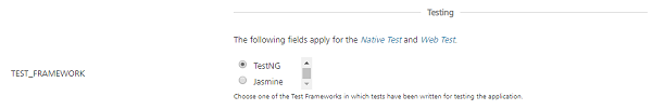 Native Testing related Parameters - The following parameters are applicable only if you want to fire automated tests on native app generated by this build.