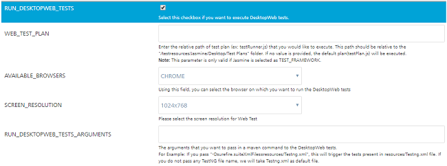 RUN_DESKTOPWEB_TESTS - select the checkbox to execute DesktopWeb tests. The following fields appear: