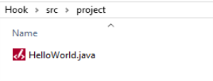 The logic for a Custom Hook is written in a java code. Let's take an example of a Hello World java program.