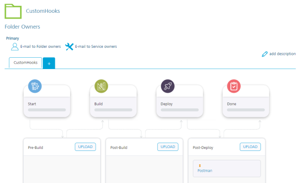 After you build the Custom Hooks, you can configure them from the Custom Hooks Management Console. You can add upto five Custom Hooks in every stage.