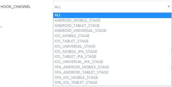 Parameter Description HOOK_NAME Specifies the name that is displayed in the respective hook point. HOOK_CHANNEL Specifies the channel on which you want to run your Custom Hook. This includes both Native and SPA channels.The Hook Channel parameter is set to ALL by default.