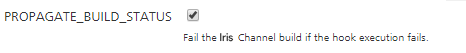 Note: The arguments must be separated by using space, and must be in the order in which you want to execute them.PROPAGATE_BUILD_STATUS This check-box specifies whether the parent job should fail if the Custom Hook execution fails. This check-box is enabled by default. -