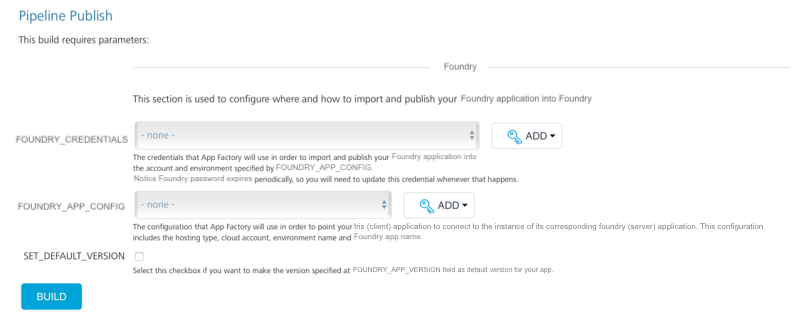 - SET_DEFAULT_VERSION - Click the checkbox to make the version specified at Foundry_App_Version field as a default version for your app.