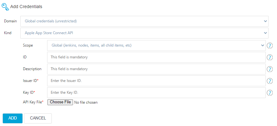 As teams typically use one set of protected mode keys across multiple apps, HCL recommends that you store this credential type in the Jenkins scope to share it across projects and to avoid creating unnecessary duplicates.