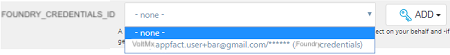 1. From the VoltMX Iris & Foundry section in the buildIrisApp job, next to the FOUNDRY_CREDENTIALS_ID parameter, click ADD. A drop-down list appears.