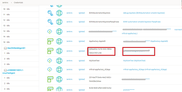 5. In the buildIrisApp job, from the APPLE_ID list, select the credentials that you added.