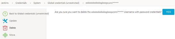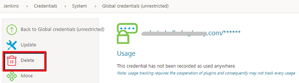 • System: The credentials are available to the associated object. Credentials with a System scope are used for email, authentication, agent connection, and scenarios in which the Jenkins instance uses the credentials.