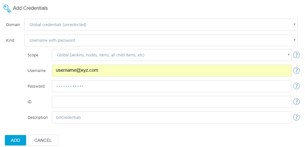 As HCL typically provides only one set of these credentials per customer, HCL recommends that you store this credential type in the Jenkins scope to share it across projects and to avoid creating unnecessary duplicates.