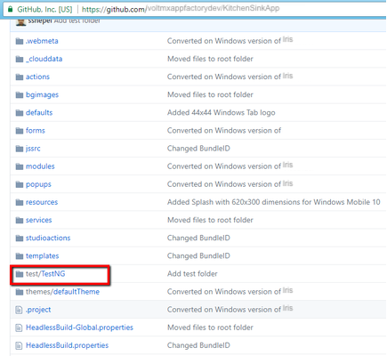 - Make sure that the Iris project contains the Appium test files at the following location: