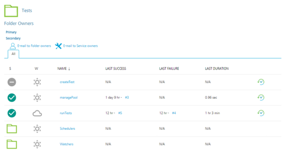 Currently, there are two types of auto-triggered test jobs: scm-triggered (Watchers) and cron-triggered (Schedulers). Every project structure has folder called "Tests" in "Iris" sub-folder, that contains job for creation of auto-triggered jobs (createTrigger) and two sub-folders where created jobs are stored.