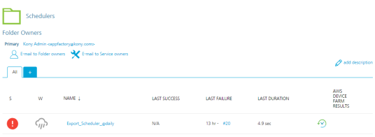 Every created Scheduler has a cron string in the job's name to simplify the job search. Refer Cron Documentation for cron expressions that can be set up in the CRON_SCHEDULE parameter.