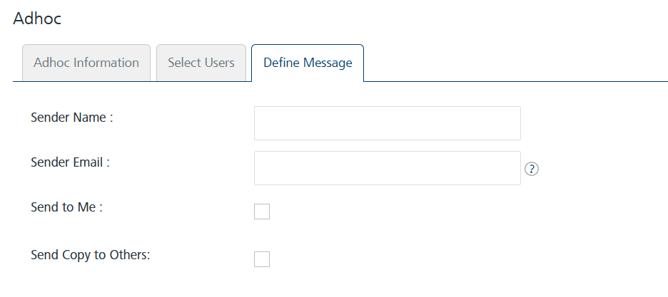 4. In the Define Message section below, the Sender Name, Sender Email, Send to Me, and Send Copy to others options can be ignored.