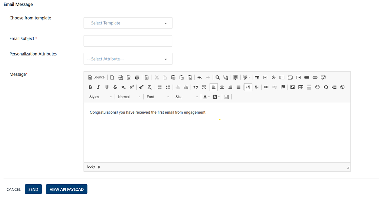 As you may recall from the earlier section of this track, you need to configure the Email SMTP Server in your Engagement Server to send the email messages. It is assumed that the configuration of the Email Server is completed before the next steps are executed.