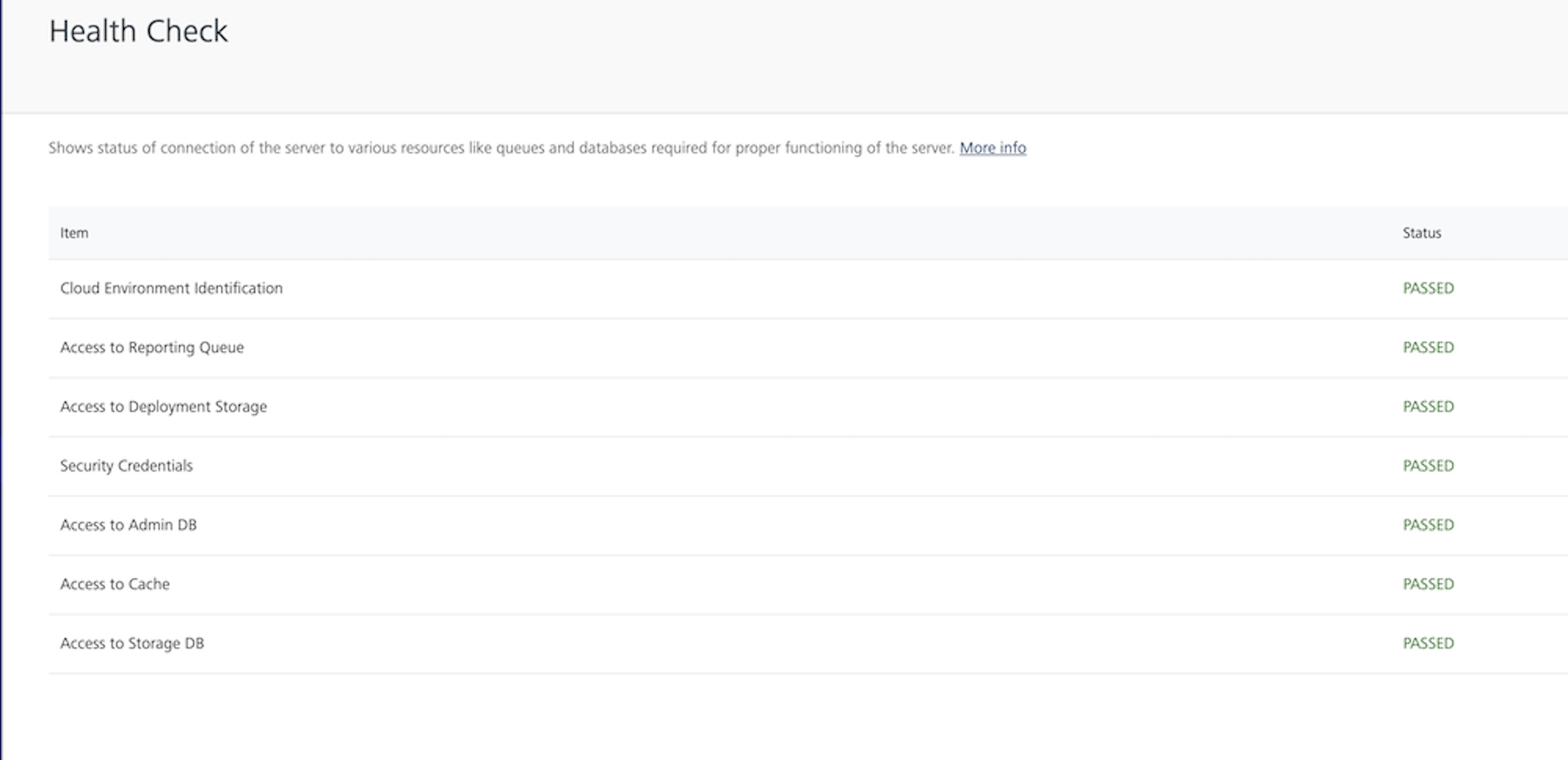 Note: It may take up to 5 minutes for the healthcheck to reflect the cache status. If you are still unable to find the particular entry in the Health Check page, try clearing the healthcheck cache using the following URL: