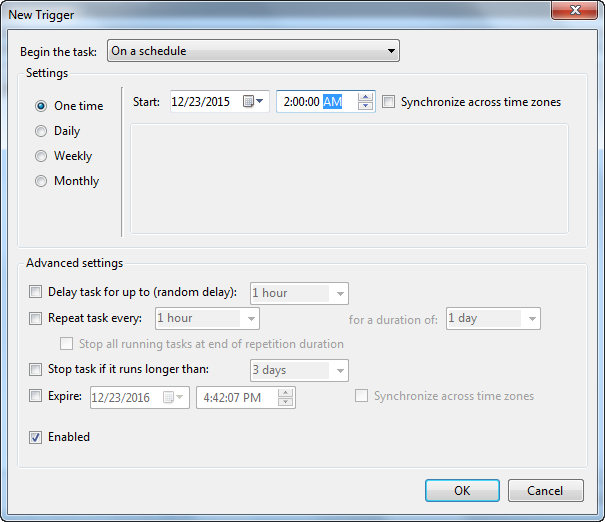 vpns_job.bat. file from your system. - Click Ok to create a new task.