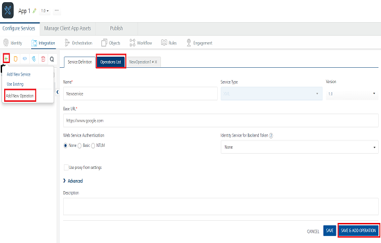 Click Add Operation to add a new operation or from the tree in the left pane, click Add > Add New Operation.Click to View image