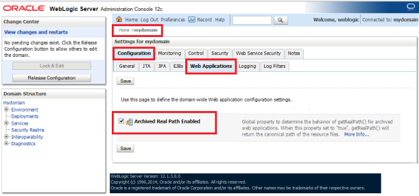 4. In the Web Applications section, select the Archived Real Path Enabled check box.