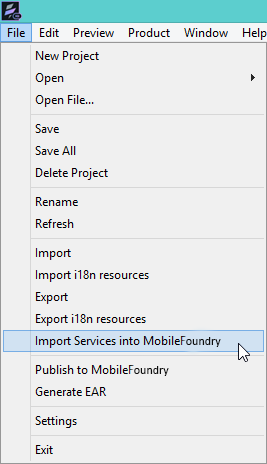 In the Iris, go to File > Import Services into Volt MX Foundry.