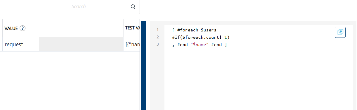 Scenario 2: If a Key is missing in the input parameter, write the template in the following manner and past it in the request tab: