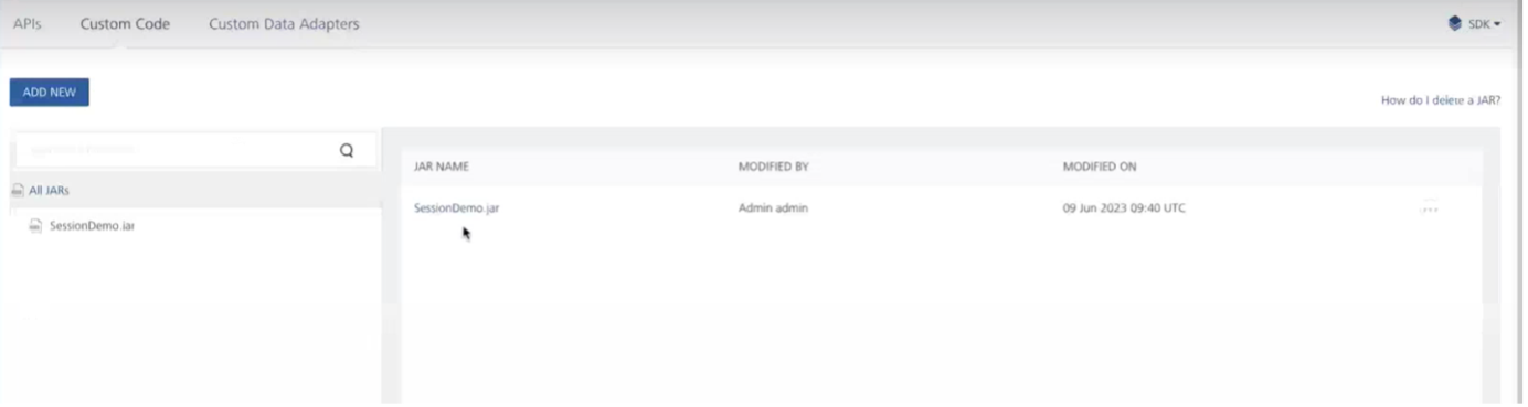 Note: Here the lib folder is processed, jar file is extracted and it is uploaded in Custom Code section.