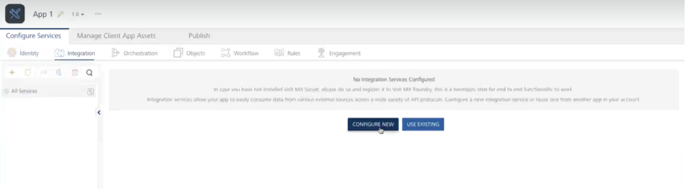 - Create an Integration Service in your Volt MX Foundry application. Select your Custom Data Adapter in the Service Type list and click Save.