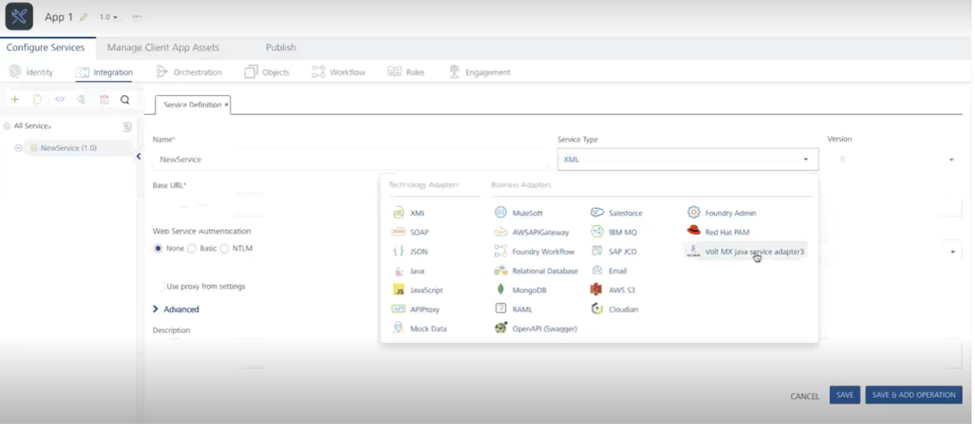 - Adapter Name[Mandatory] - Name that Volt MX Foundry displays on the console.