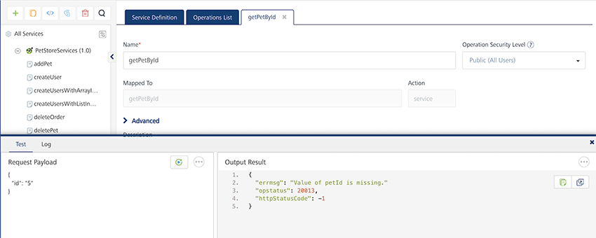 As we named our adapter PetStoreExample, click on PetStoreExample to use it in your service.
