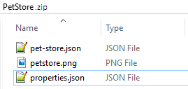 If your Custom Data Adapter is based on RAML or Swagger, your zip file should contain the respective file at the root location. Let us take the same example of the Swagger PetStore Data Adapter.