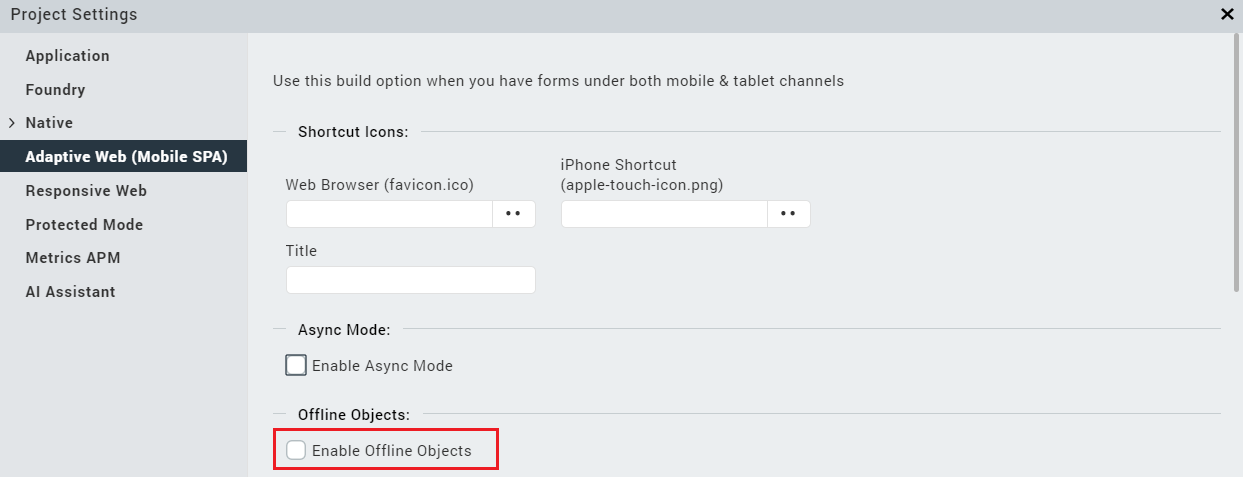 To enable Offline Objects for Adaptive Web (Mobile SPA) apps, follow these steps: