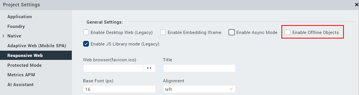 3. Under General Settings, select the Enable Offline Objects check box.