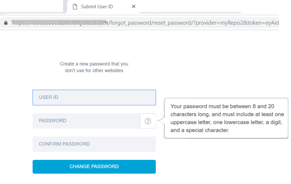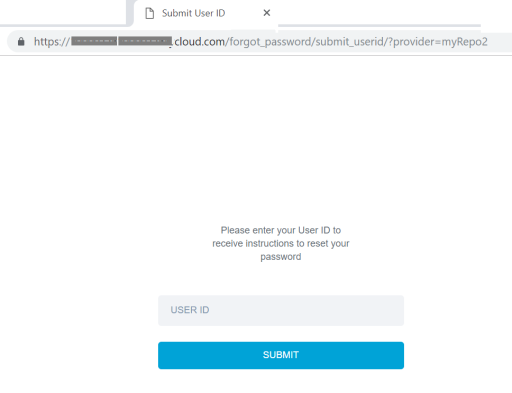 Go to the reset_pswd URL by using a browser. The Submit User ID screen appears.
