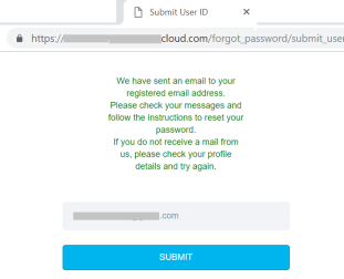 Click SUBMIT. The reset password mail process starts and sends an email to your registered email account.