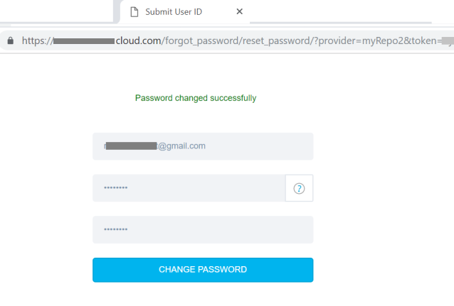 - Click CHANGE PASSWORD. A confirmation window is displayed saying, Password Changed Successfully.