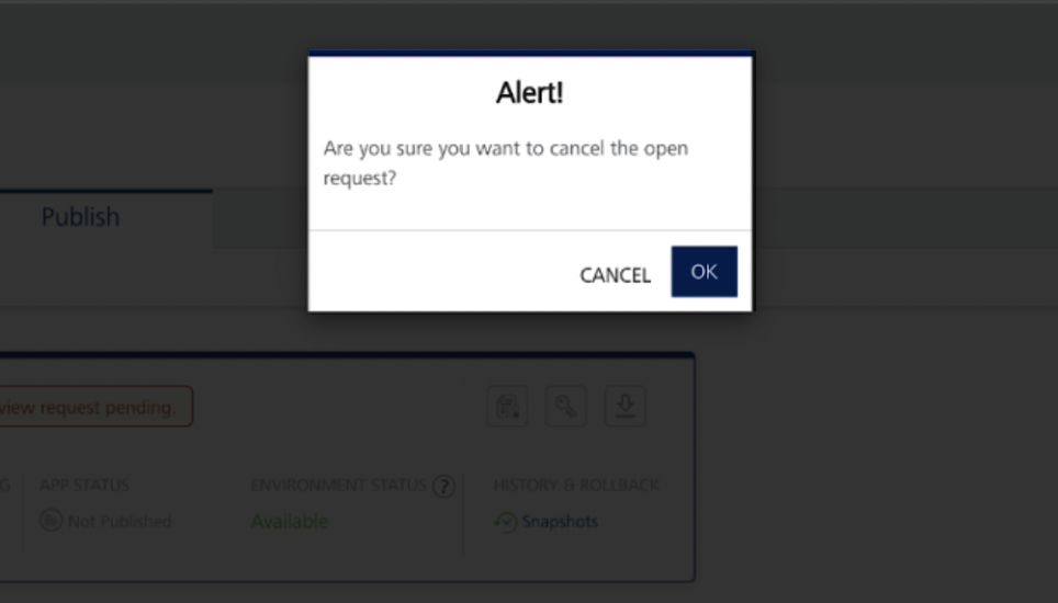 • Deleting or renaming a Foundry environment, disabling Governance for a Foundry environmenrt or deleting a Foundry app is only allowed when there is no pending review request and there is no app with approved review requesting pending to deploy.