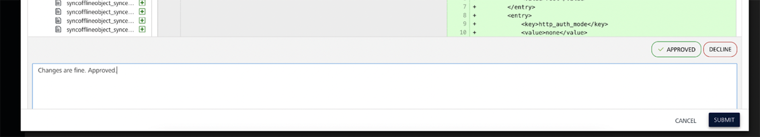 • Change list Viewer: Reviewers can inspect changes between app versions using a Git-style changelist.