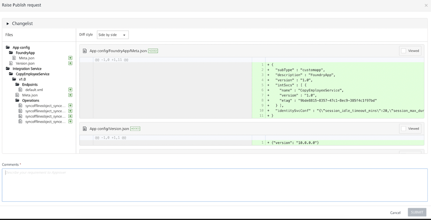 • All Foundry app services published till now will be shown as a change under the changelist in the first publish review request.