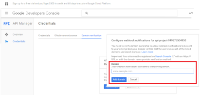 For example, configure your Google app to accept requests from authentication service by typing theauth.volt mxcloud.comin the App Domain text field.